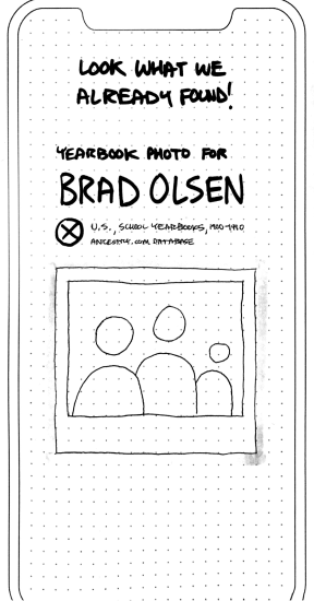 Hypothesis: By providing value earlier in the onboarding experience—such as yearbook photos or surname insights—users will feel rewarded and will be more likely to continue on to enter into the discovery flywheel (Seeing a record that has family info in it, and then seeing another etc.).